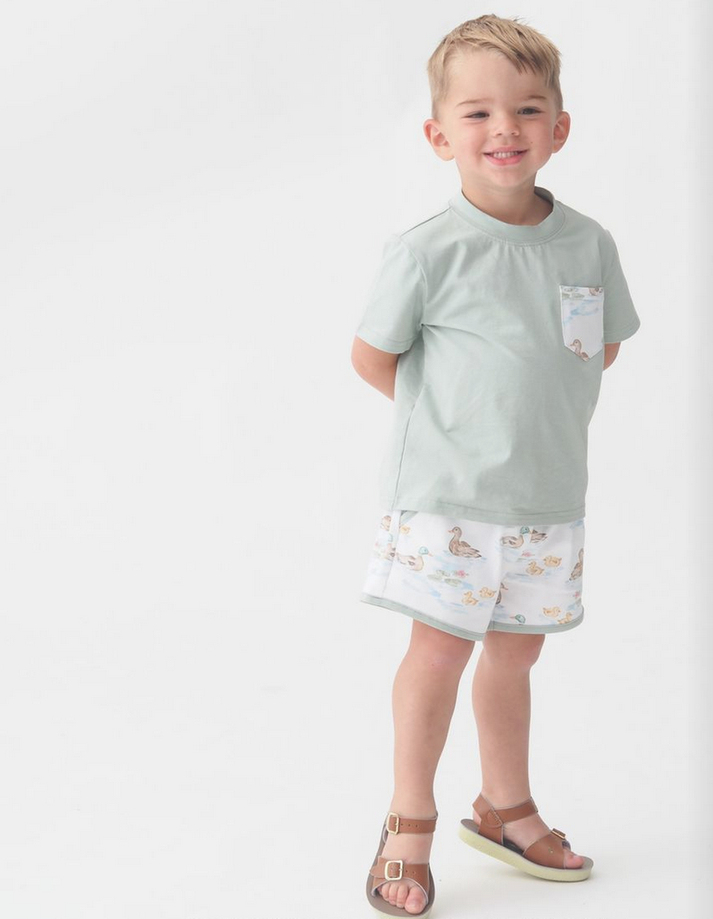 253770S Darling Ducks Beckham Play Short Set {Sage} S26