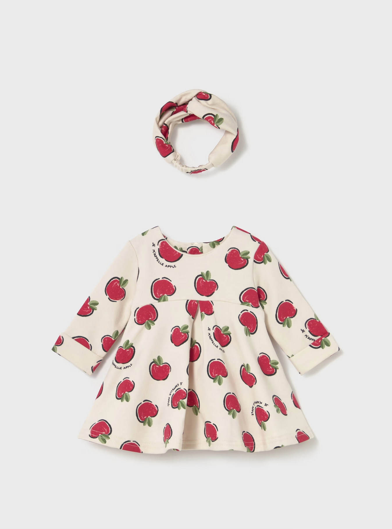 Fresh-picked style! This ivory dress with red apple print and a matching headband is perfect for fall fun. A gathered waist and sof cotton make it comfy fr all-day wear, from orchard strolls to classroom twirls.