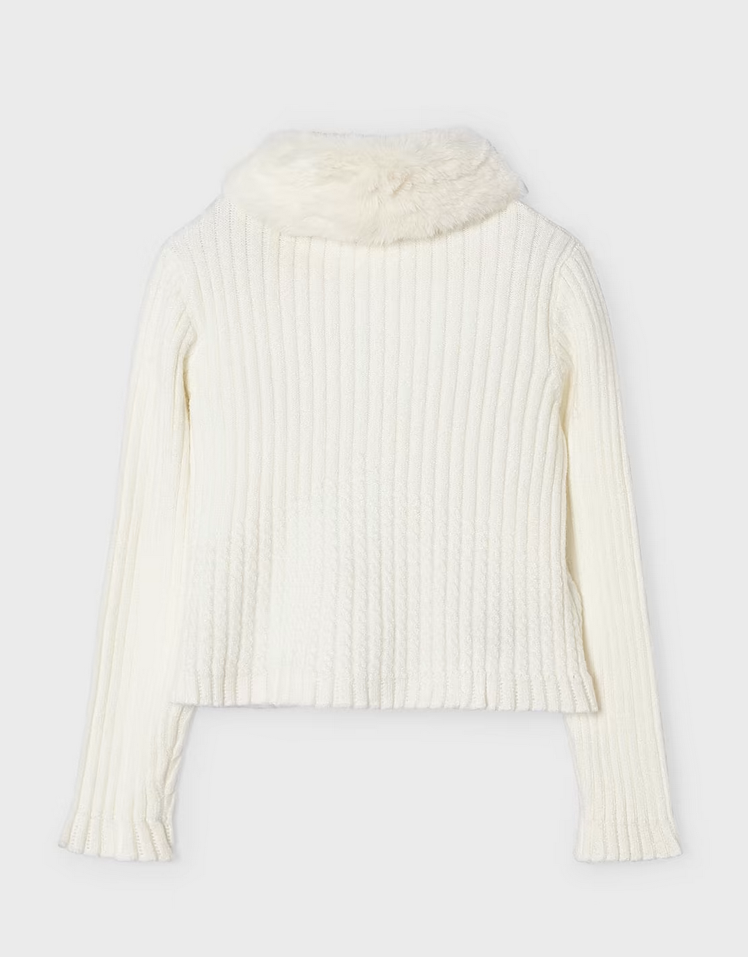 4309Cardigan for girl. Detachable collar for an adaptable design. Button fastenings down the front.
