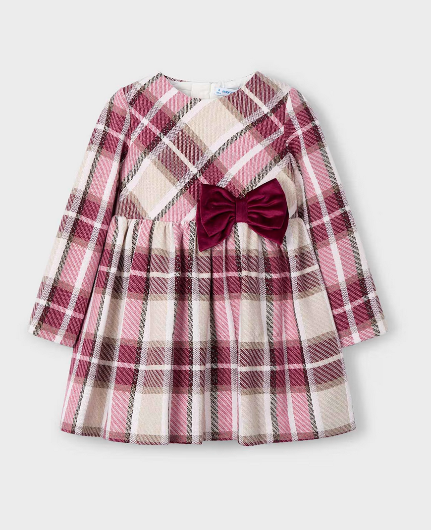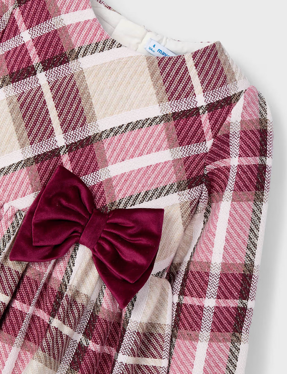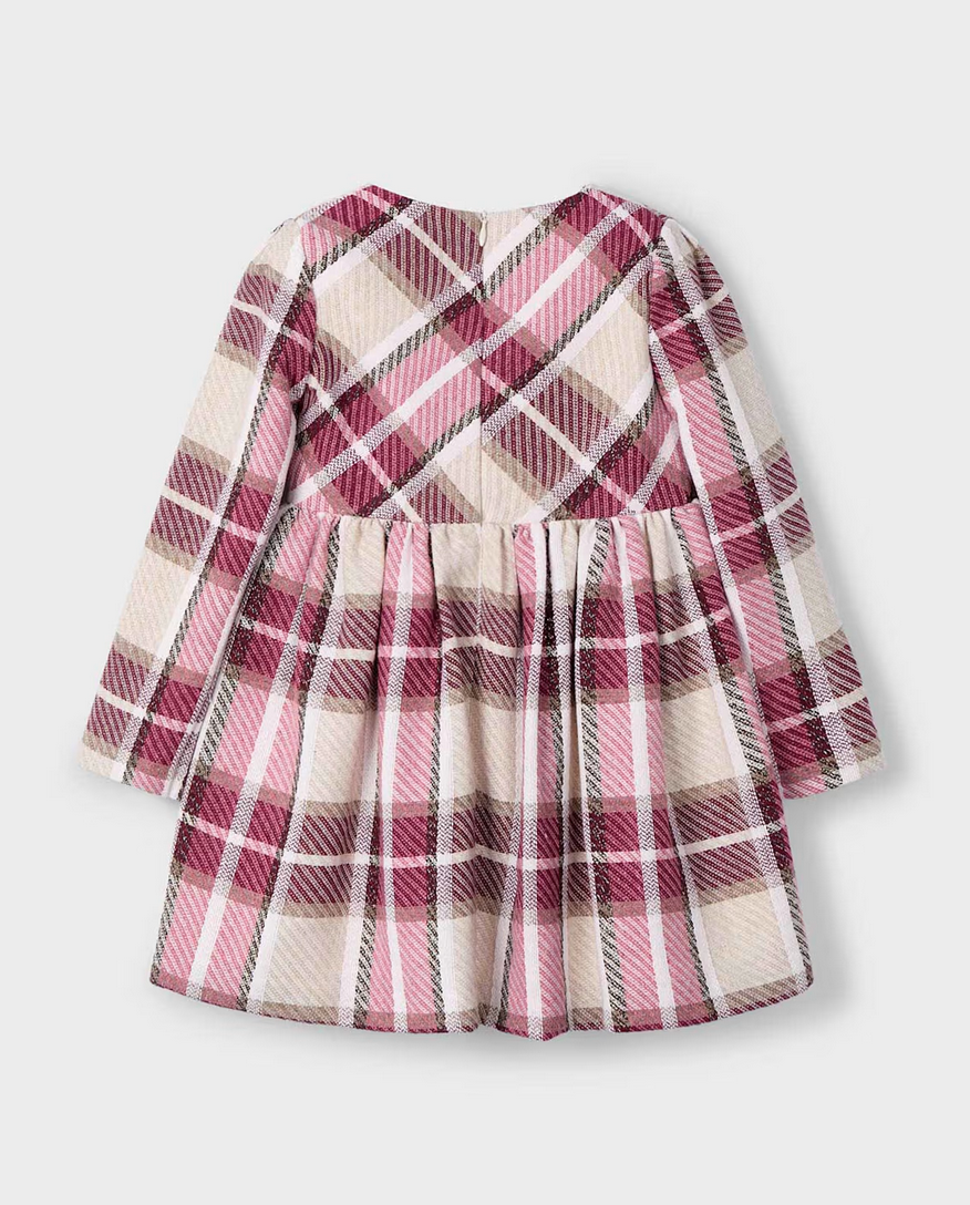 A timeless silhouette meets autumnal charm in this beautifully tailored plaid dress. Featuring a warm tan and maroon color palette, this piece is perfect for seasonal gatherings, portraits, or everyday elegance.