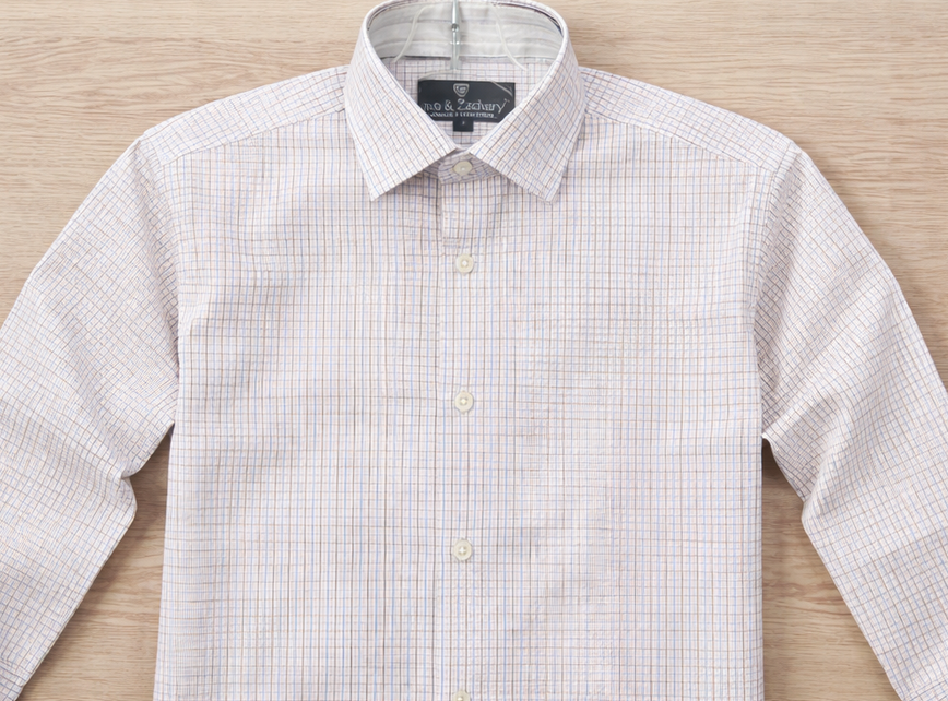 50054 Classic and polished, this boys long sleeve dress shirt features a soft neutral plaid pattern that’s perfect for church, Easter, weddings, family photos, graduations, and special occasions