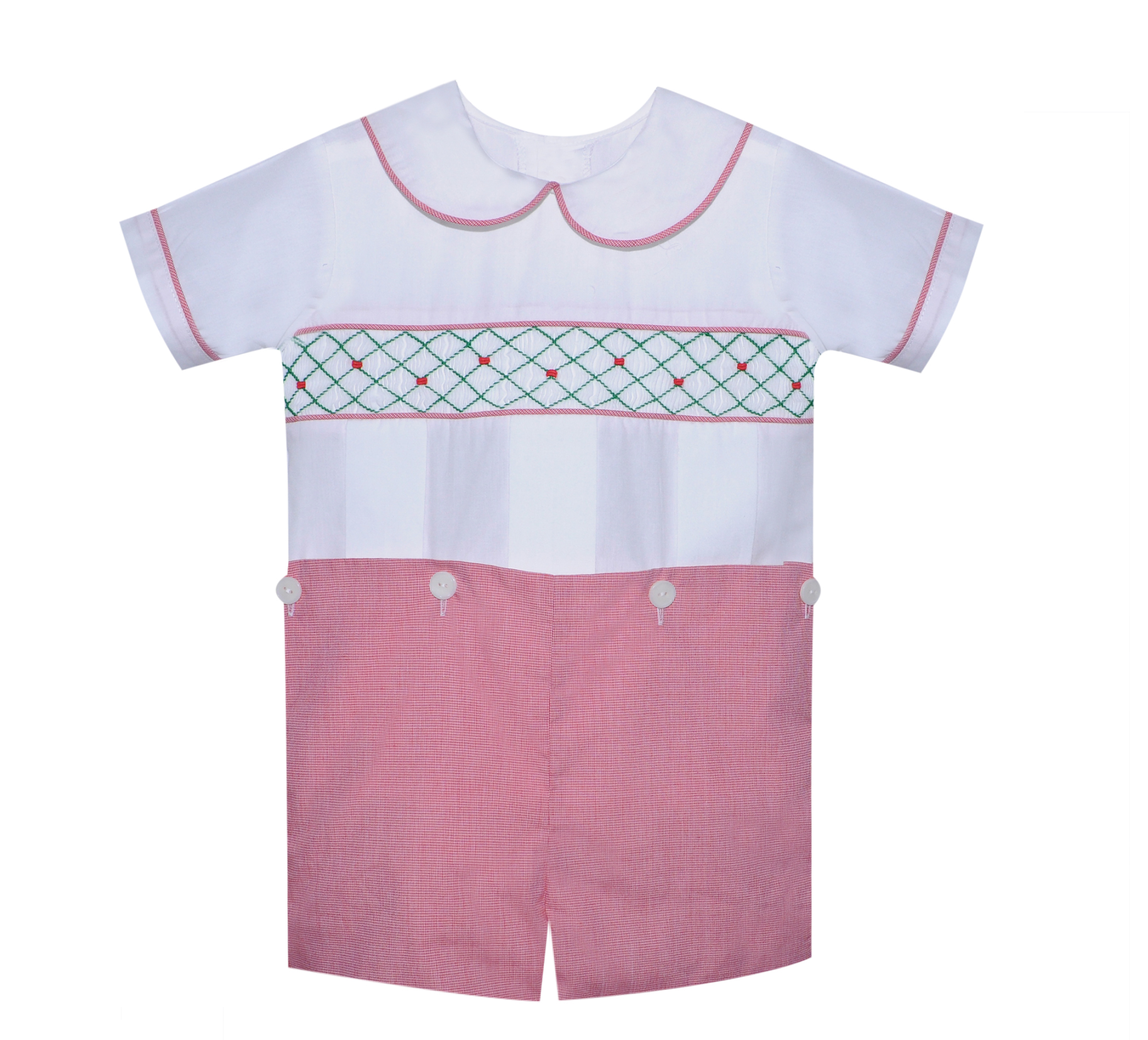 The Remember Nguyen Plaid Juliette Bubble features a charming red plaid pattern with a sweet ruffled collar and delicate gathers, offering a classic, festive look perfect for holiday photos, family outings, or everyday comfort.