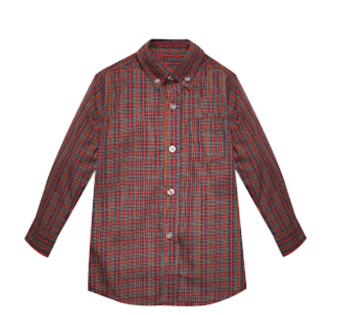 930AB The Remember Nguyen 930AB Plaid Arthur Button Down Shirt features a classic red plaid pattern with a crisp button-down collar and long sleeves, offering a polished yet comfortable look perfect for everyday wear or special occasions.