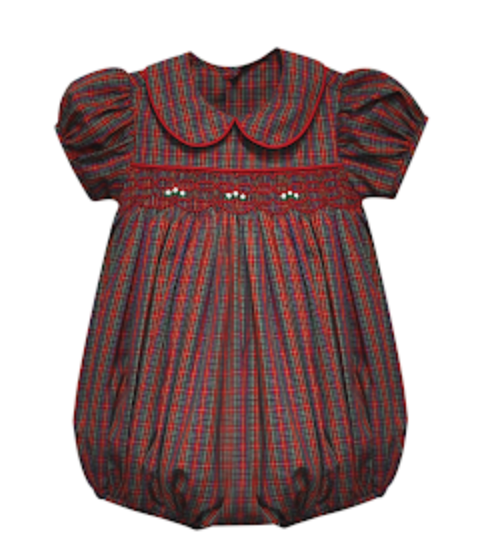 930BB The Remember Nguyen 930BB Plaid Reagan Bubble features a charming red plaid design with a classic rounded collar and gentle gathers, offering a sweet, timeless look that’s perfect for holiday photos, family outings, or everyday comfort.