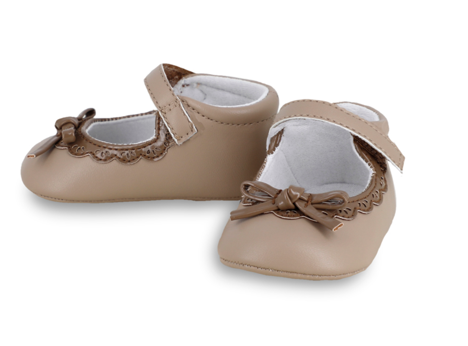 Classic and sweet, these newborn Mary Janes feature a leather-look finish, soft cotton lining, and an easy Velcro strap. The lightweight sole and decorative bow make them perfect for comfort, charm, and special occasions.