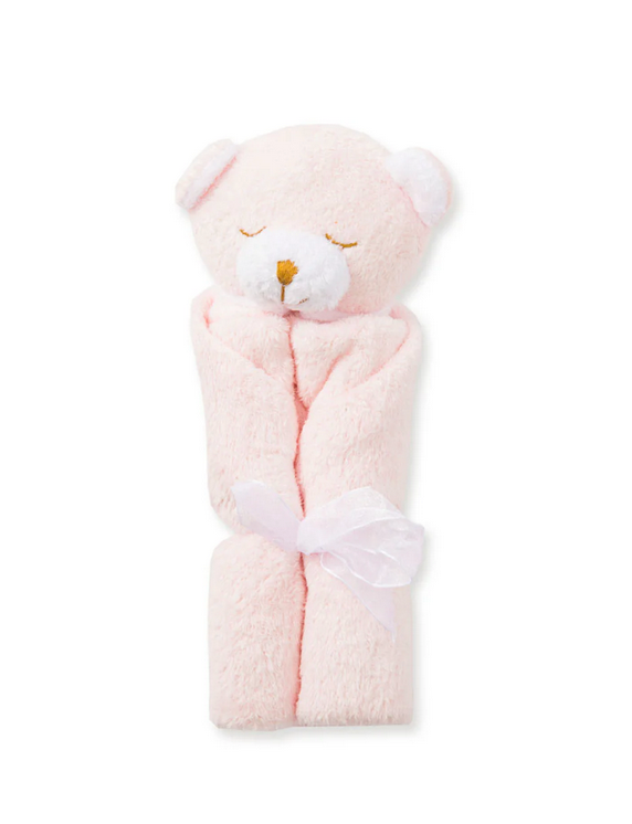 Bear Blankie {Pink} Soft and cozy lovey blanket with adorable plush animal detail. Perfect for snuggles, naps, and comfort at home or on the go—an ideal gift for babies and toddlers.Need help with your purchase? Call (225) 677-7776.