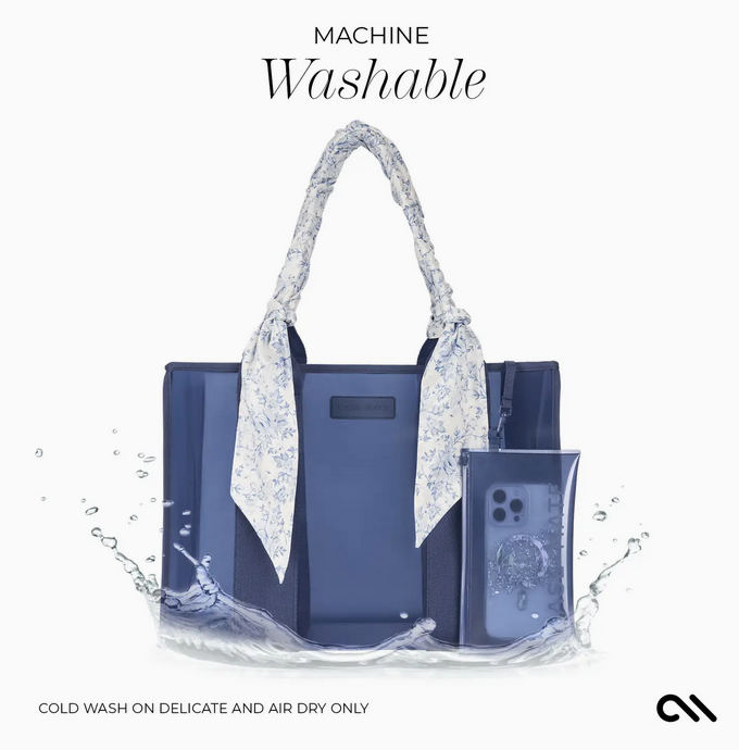 ...your laptop, makeup bag, shoes, water bottle, and more. The easy-to-clean material handles coffee spills effortlessly, and the luxurious extra-wide straps keep things comfortable, no matter how much you overpack. Organize your phone and smaller belongings in the water-resistant phone pouch and attach it to the key leash so they’re always within reach. Fold it or fill it— this tote is ready to go when you are.