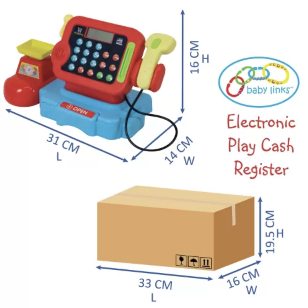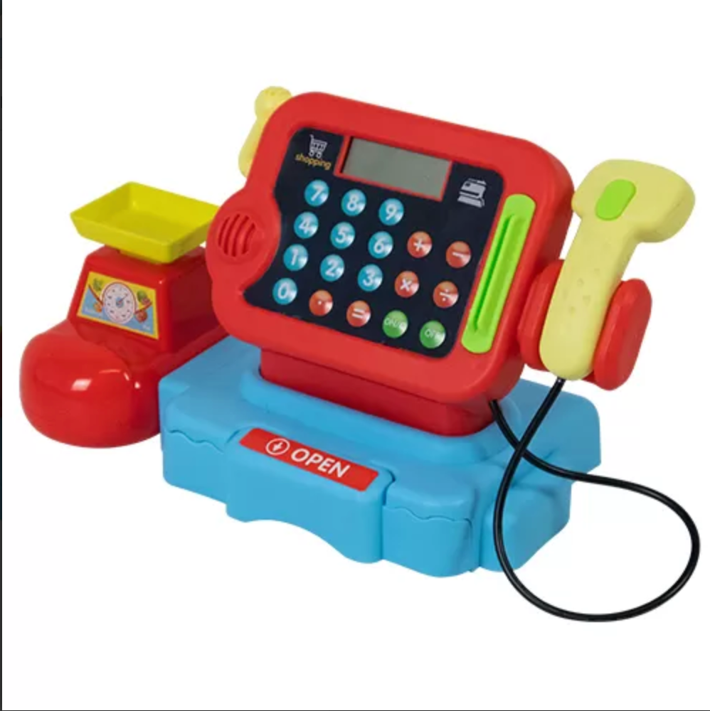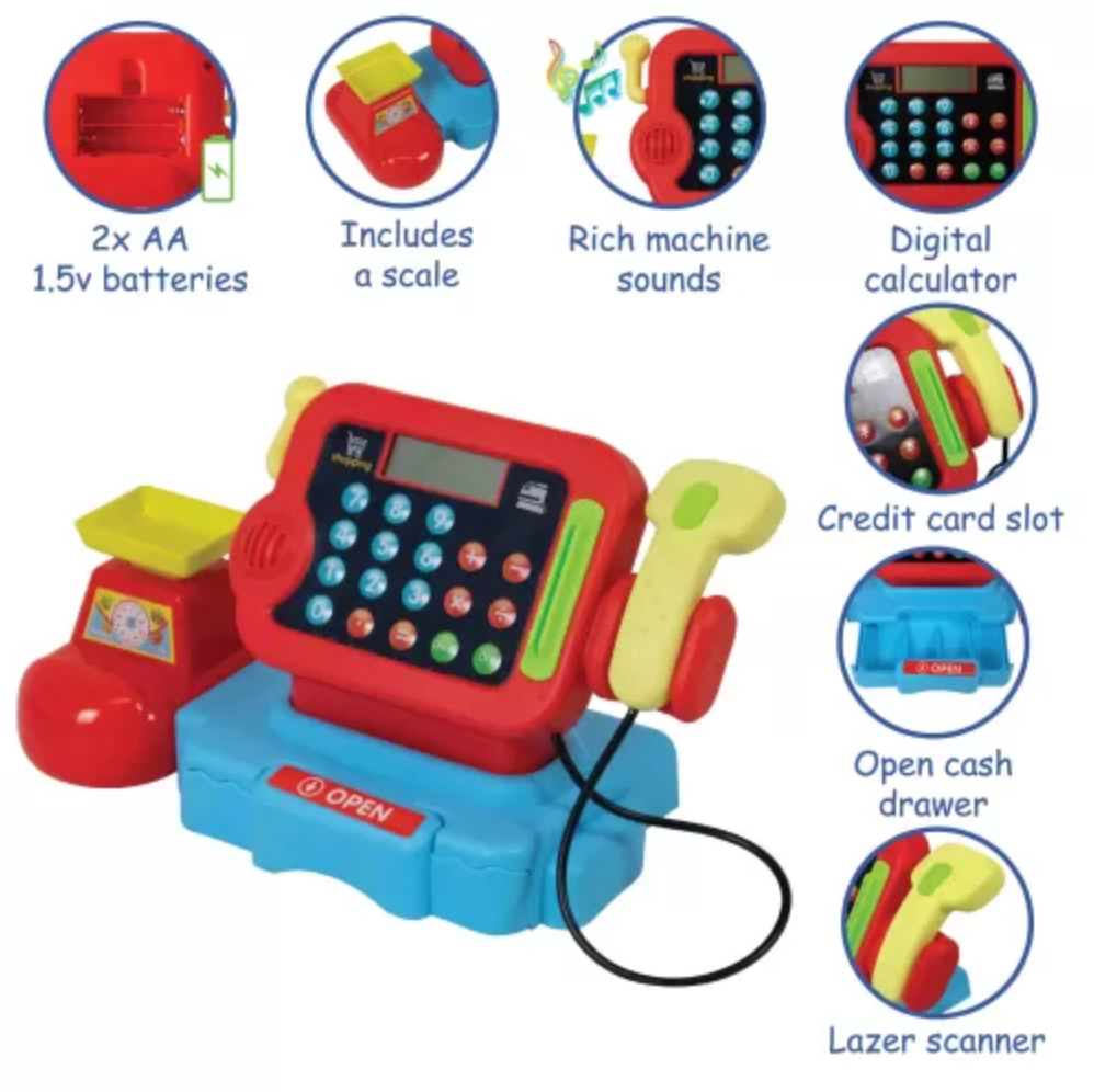 Cash Register {Red/Blue} Operate your very own supermarket checkout cash register with this complete play set. The pretend & play cash register provides a fun way for kids to learn and improve basic math skills while engaging in imaginative play.