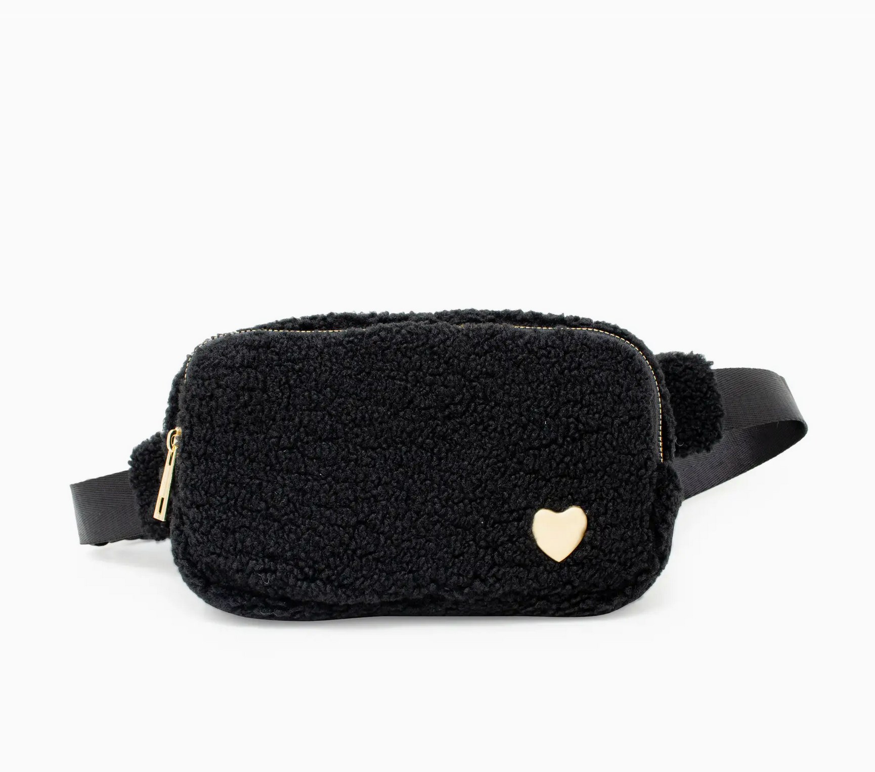ntroducing our Kids' Fuzzy Belt Bag – the perfect blend of style and comfort! This adorable belt bag features a soft, fuzzy exterior that adds a cozy touch, while the gold heart charm on the front brings a bit of sparkle and fun.