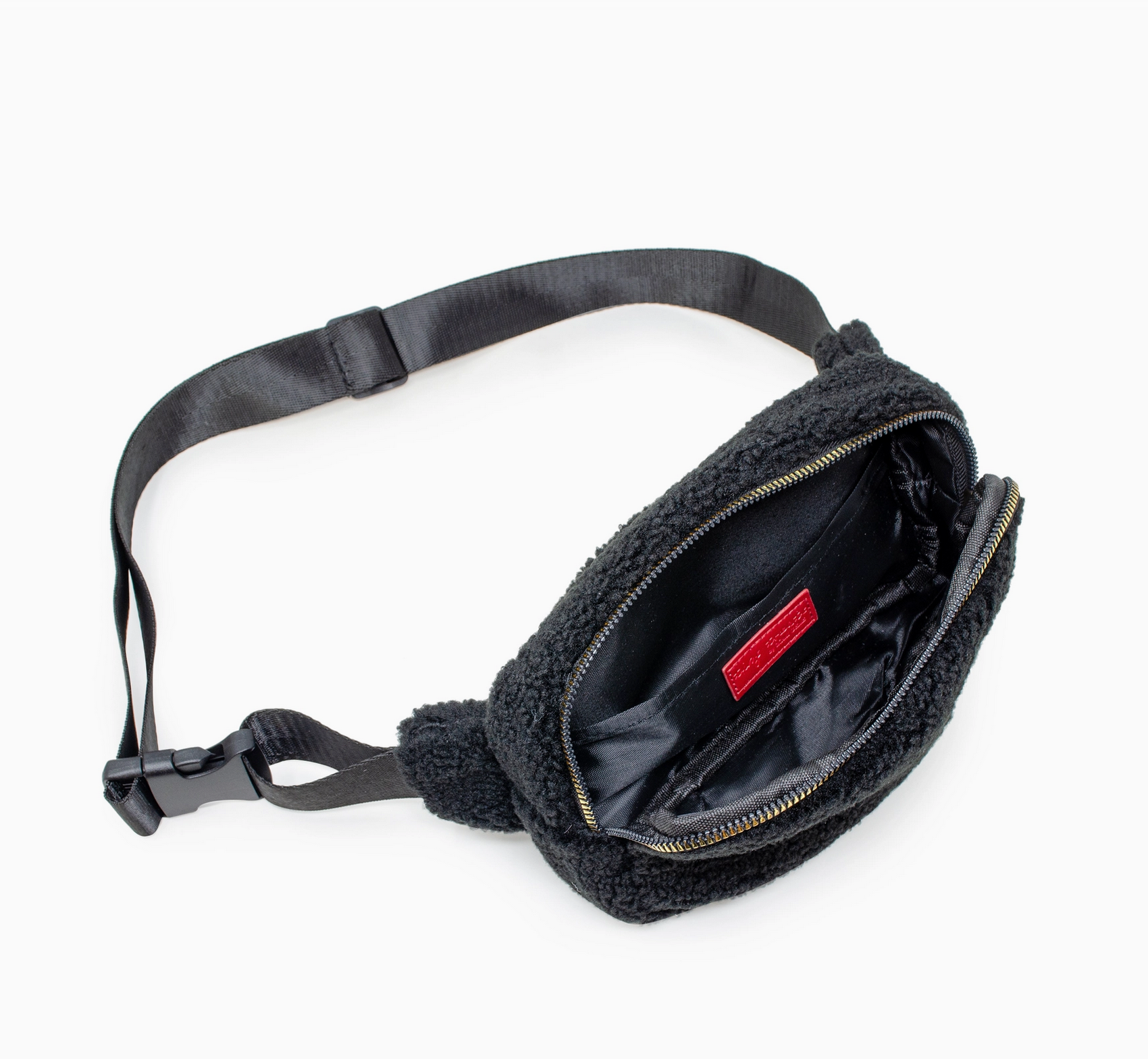 Fuzzy Crossbody Sling Bag w/ Heart {Black}