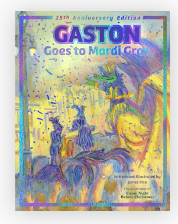 In Cajun country, Gaston joins a Courir du Mardi Gras group, enjoys spicy gumbo, and dances in a fais-do-do until dawn. In New Orleans, Gaston rides along with the Krewe of Zulu and delivers painted coconuts to the crowds who are yelling, "Throw me something, Mister!" The festivities continue with Mardi Gras balls where Gaston dances the night away. Every page has Rice's signature artistic style for children to enjoy and learn more about the magic of Mardi Gras!