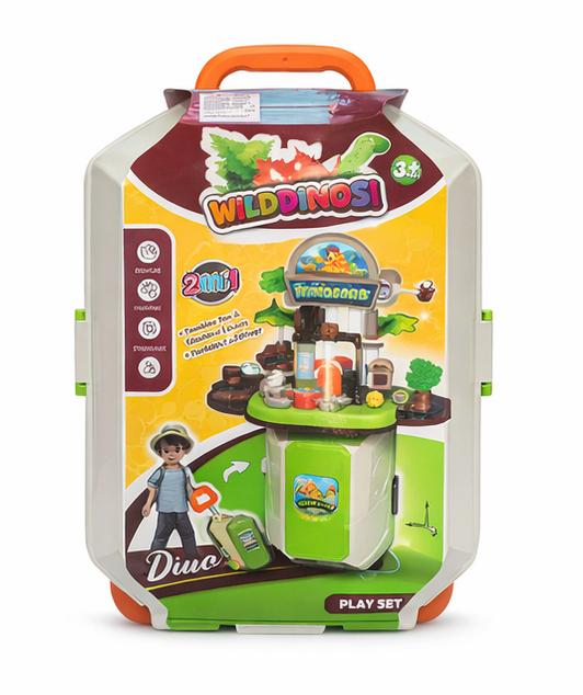 2-in-1 Wild Dinos playset that transforms from a carry case into a fun dinosaur adventure station! Includes accessories for imaginative play. Perfect for kids 3+ who love dinosaurs and hands-on fun at home or on the go.