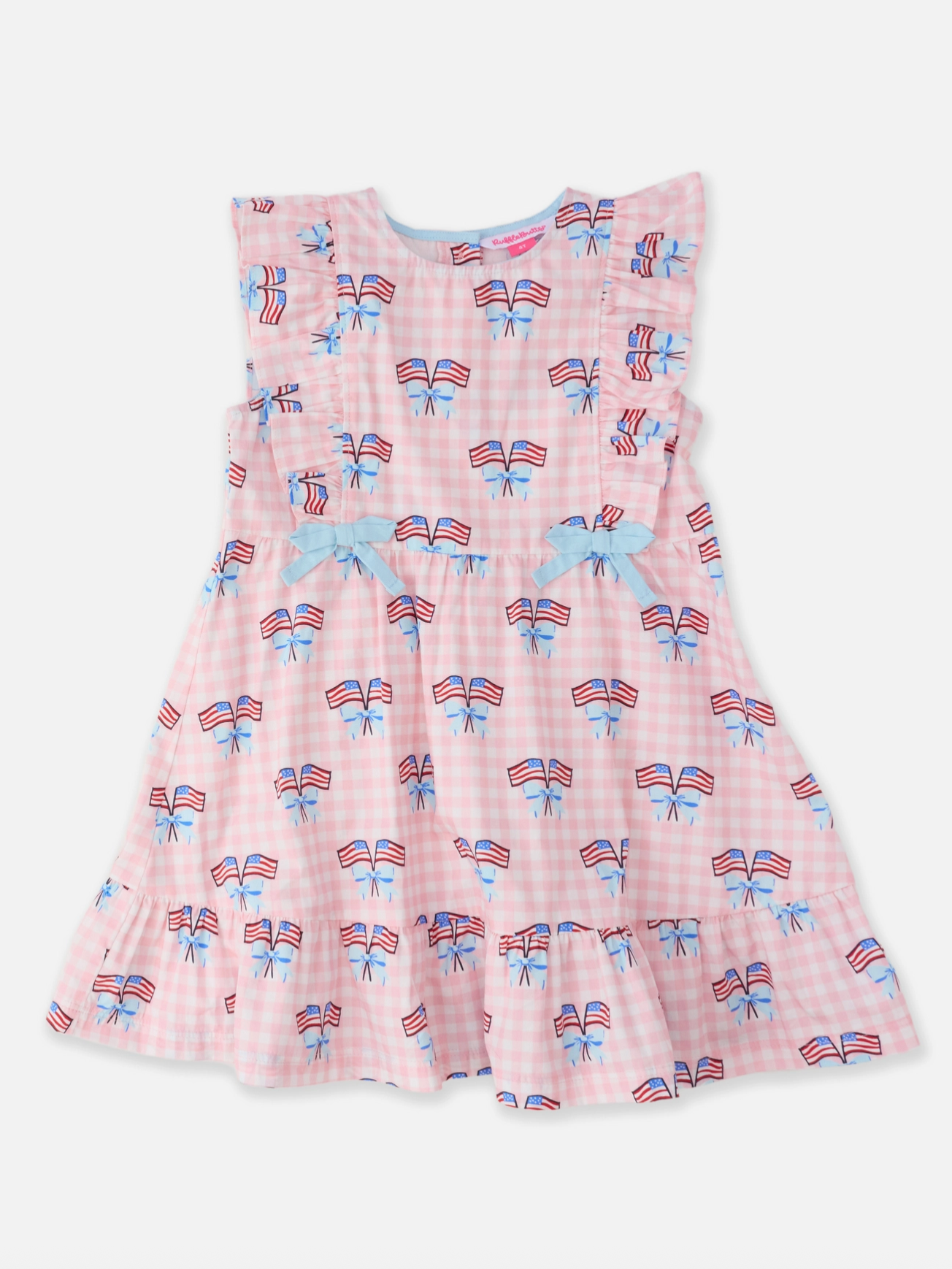 Girls Patriotic Gingham Pinafore Bow Dress {Pink}