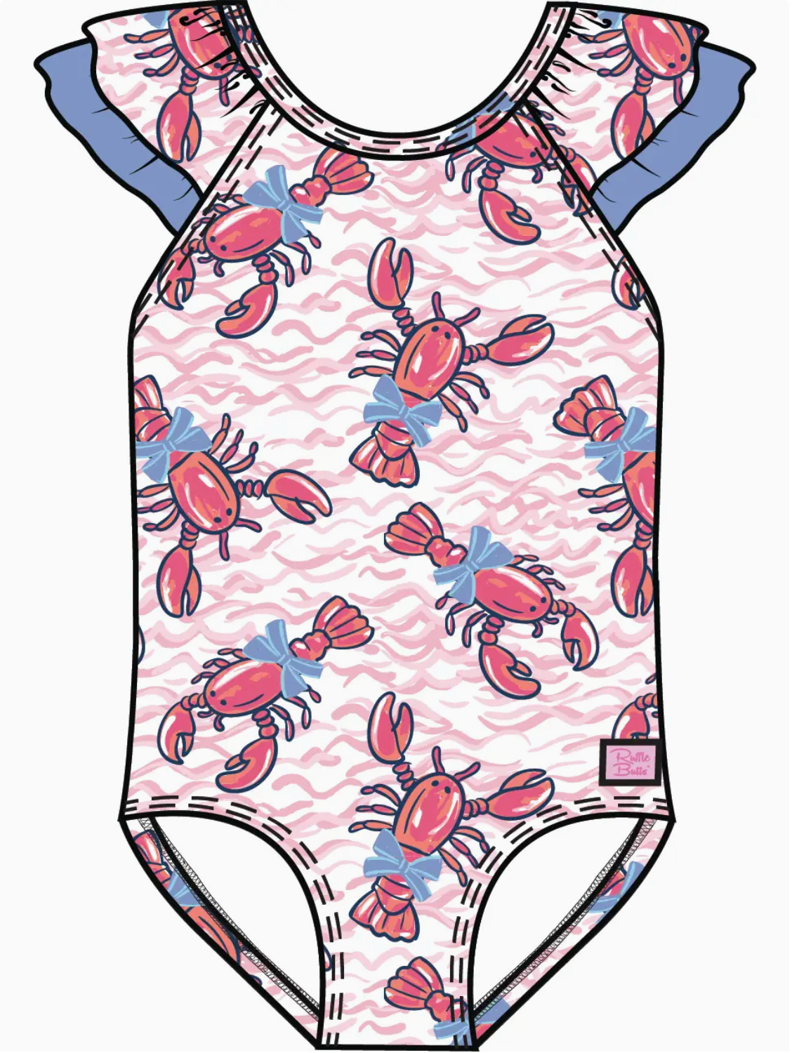 Lobster Lagoon Bow V-Back Swimsuit {Pink/Blue} S26
