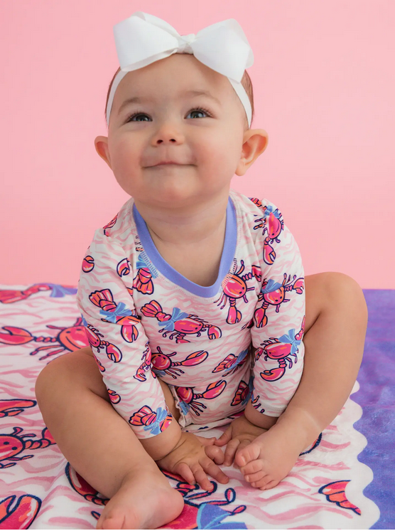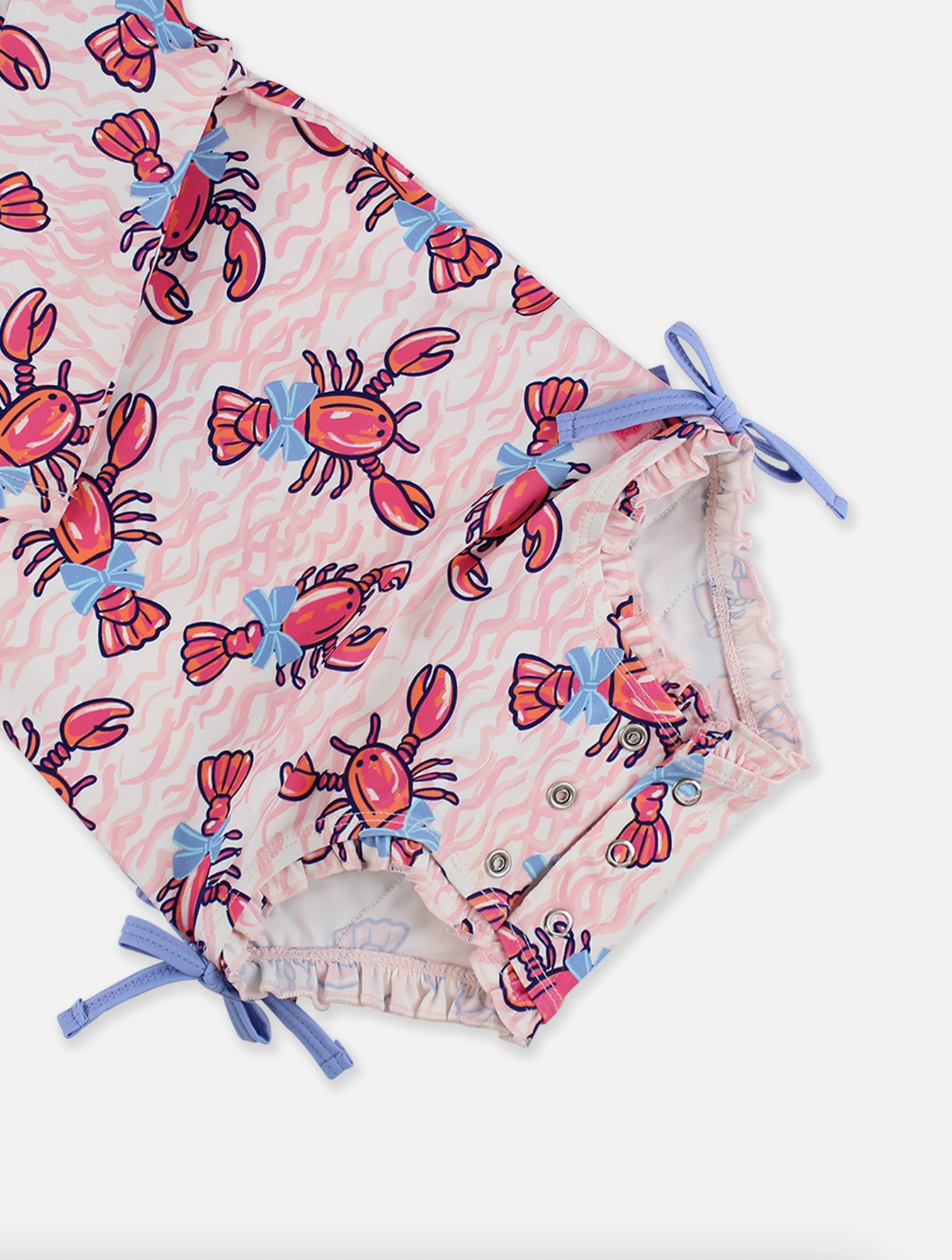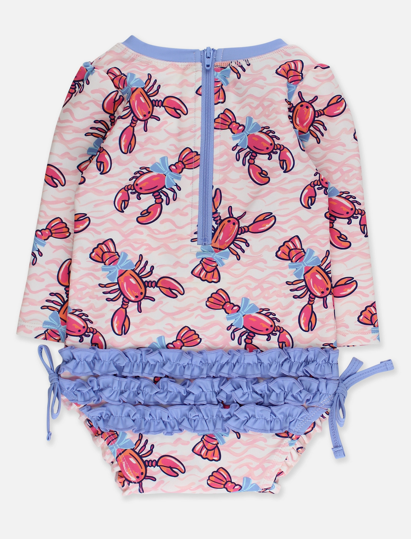 Lobster Lagoon LS One Piece Rash Guard Swimsuit w/ Rear Ruffles