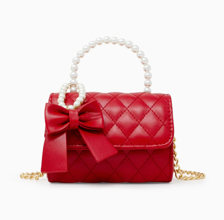 Clear Jelly Purse {Red} Add the perfect pop of style with this mini red quilted purse! Features a beaded handle, gold chain strap, and twist-lock closure. A fun accessory for dress-up, birthdays, or gifting! Need assistance, Call (225)677-7776.