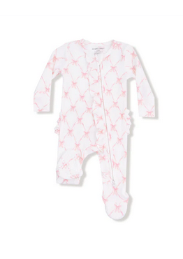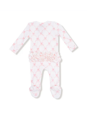 Ribbon Bow Trellis 2 Way Zipper Ruffle Back Footie {Pink}