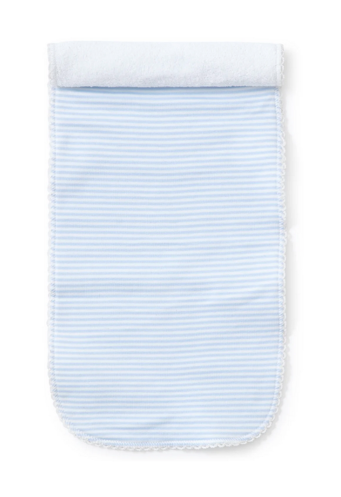 44130 This light blue striped burp cloth is soft, absorbent, and gentle on baby’s skin. Perfect for feedings, gifting, or everyday spills—an essential for any diaper bag!