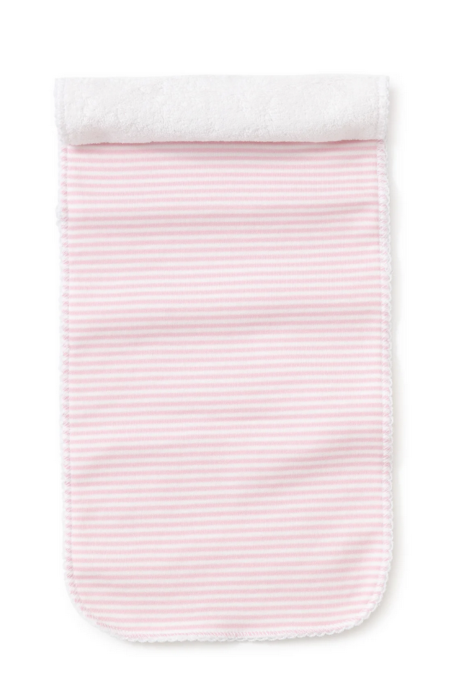 44130 Soft, absorbent, and sweet! This pink striped burp cloth is gentle on baby’s skin and perfect for everyday messes. A must-have essential for feeding time, gifting, and diaper bags.