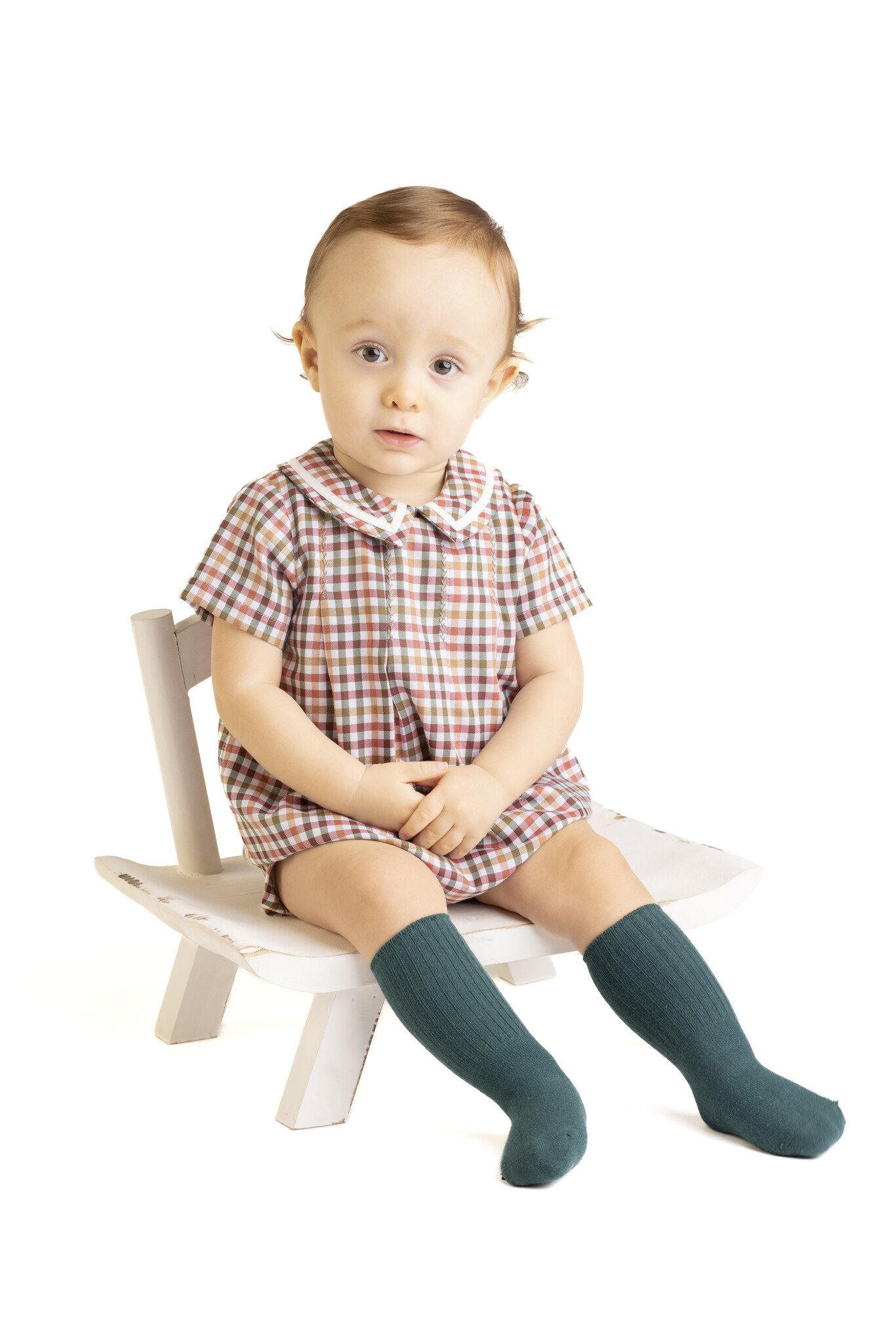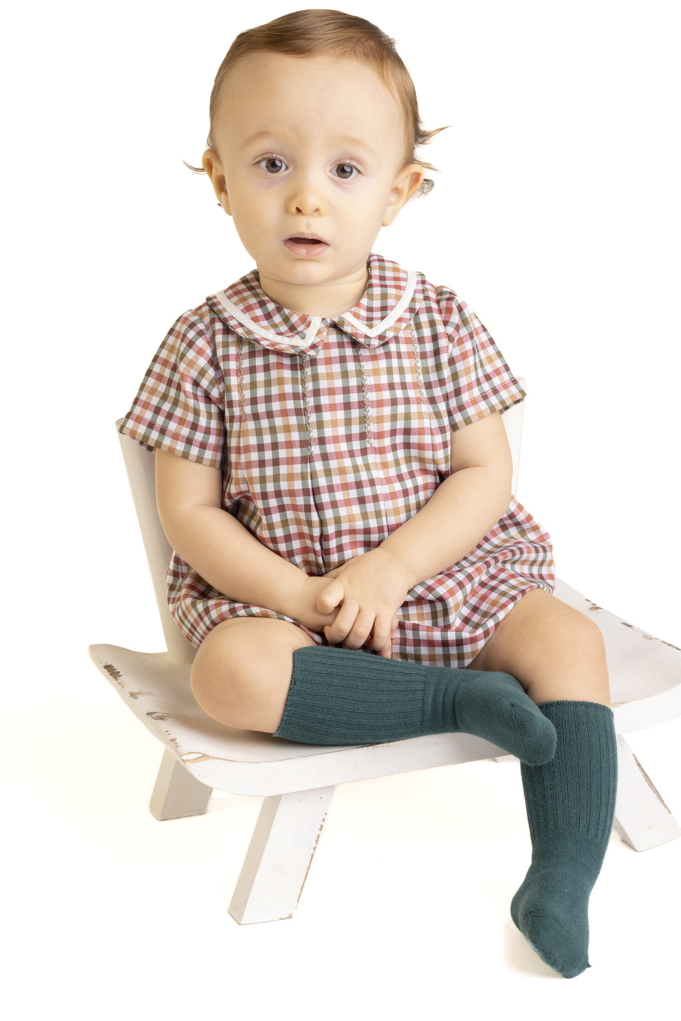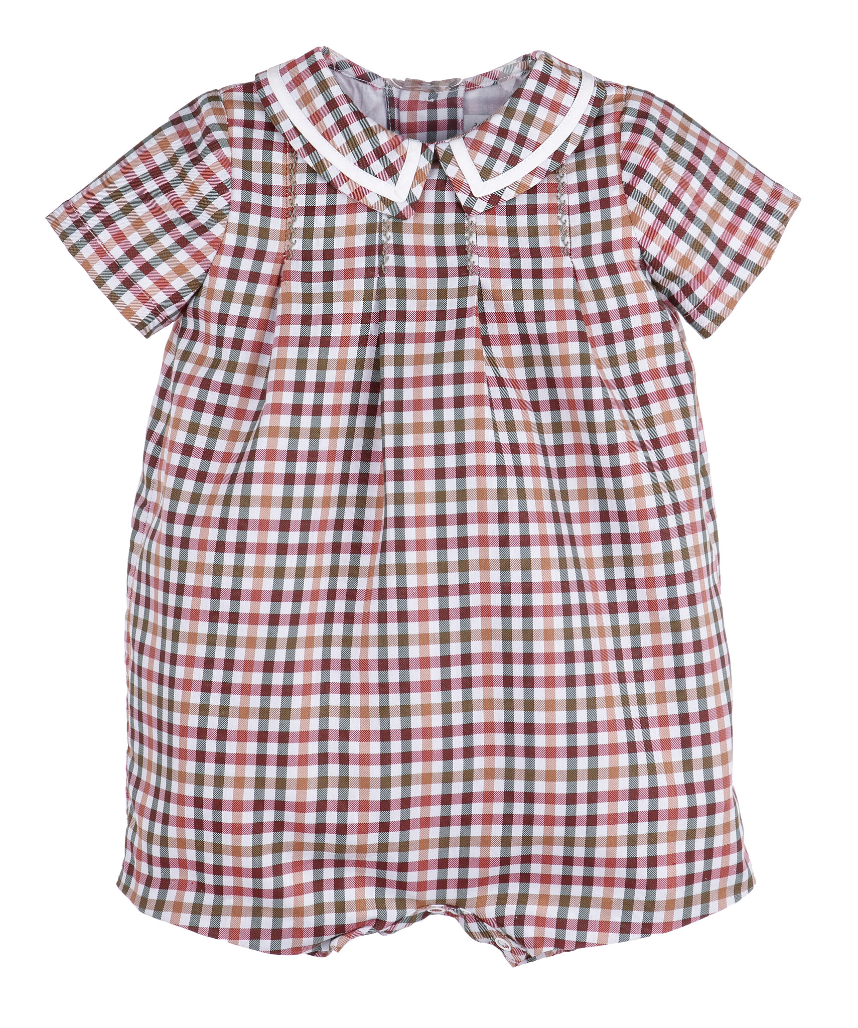 SL3933 A fall favorite! This long-sleeve petal float features rich cider-toned checks and charming scalloped detail. Perfect for sister sets—matching brother bubble available! Need help styling? Call us at (225)677-7776.