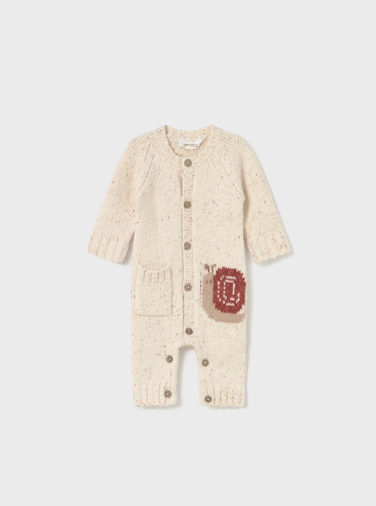 Cozy and charming, the Mayoral Snail Sweater Knit Onesie in Cream/Rust features soft knit fabric with an adorable snail design. Perfect for keeping baby warm and stylish, it offers comfort, stretch, and easy snap closures for everyday wear.