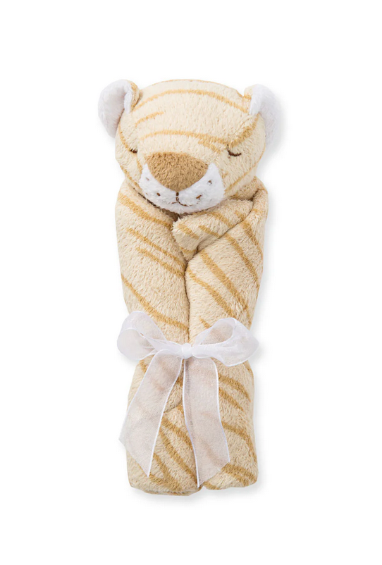 Tiger Blankie {Tan Multi} Soft and cozy lovey blanket with adorable plush animal detail. Perfect for snuggles, naps, and comfort at home or on the go—an ideal gift for babies and toddlers.Need help with your purchase? Call (225) 677-7776.